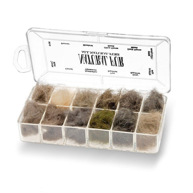 A great collection of natural fur dubbings in an easy-to-use dispenser. Includes Mink, American Possum, Camel, Australian Possum, Fox Squirrel, Pine Squirrel, Light Hare's Mask, Dark Hare's Mask, Olive Hare's Mask, Muskrat and Beaver.